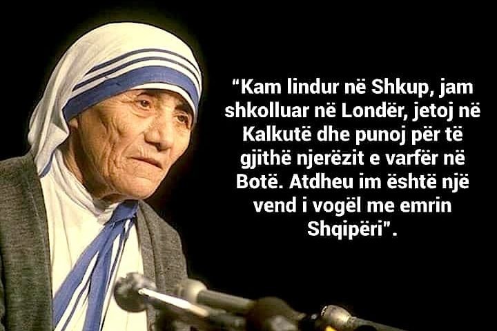 Nënë Tereza ose Shenjt Tereza e Kalkutës lindi në Shkup në vitin 26 gusht 1910. Emri i saj i lindjes është Anjezë Gonxhe Bojaxhiu. Ajo vizitoi Shqipërinë për herë të parë në gusht të vitit 1989.
