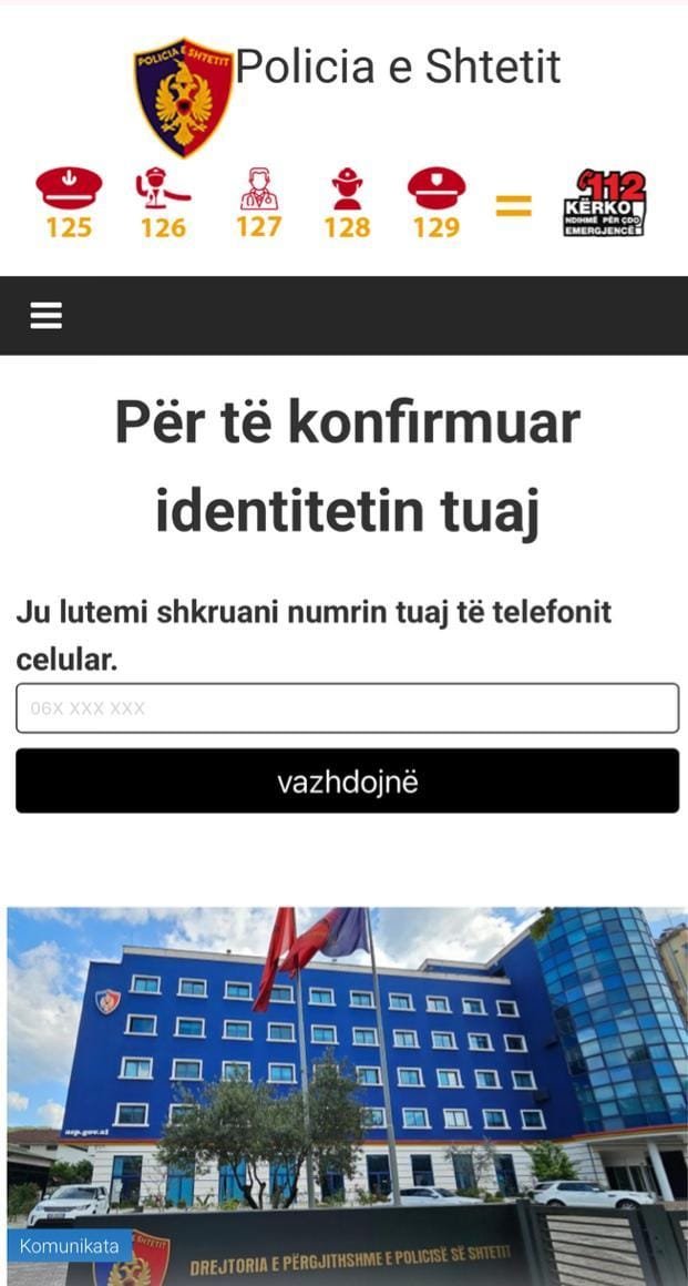 Policia e Shtetit sqaron se kjo faqe nuk është faqe zyrtare, pasi përdor një adresë interneti të rreme (domain: aspalgov.cyou), e cila nuk i përket asnjë institucioni shtetëror.