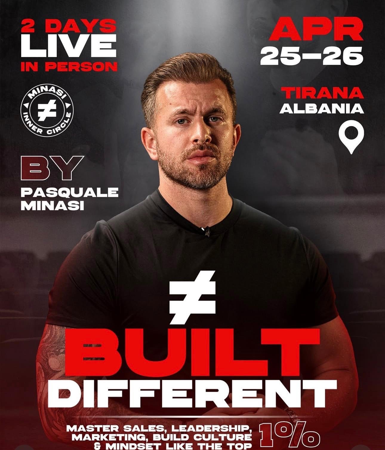 Në kuadër të bashkëpunimit mes Konventës Ndërkombëtare “Suksesi eshte qellimi yt” të 30 majit dhe Built Different, dëshirojmë t’ju informojmë se një nga spikerët tanë, Pasquale Minasi, këtë fundjavë është organizator i eventit “Built Different 2.0” në Tiranë. Për komunitetin tonë është siguruar një ofertë ekskluzive dhe me kushte shumë të favorshme.