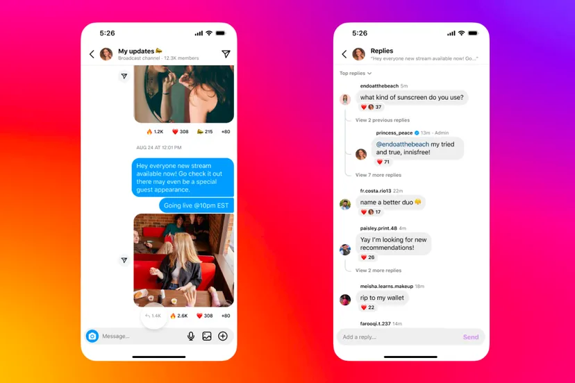 Instagram po shton karakteristika të reja në kanalet e transmetimit që u ofrojnë krijuesve më shumë mundësi për të bashkëvepruar drejtpërdrejt me ndjekësit e tyre. Meta njoftoi se krijuesit mund të aktivizojnë “Përgjigjet” në bisedat e “Broadcast channel” duke lejuar pjesëmarrësit të përgjigjen ndaj mesazheve ashtu siç mund të bëjnë tashmë në postimet e Instagram-it.