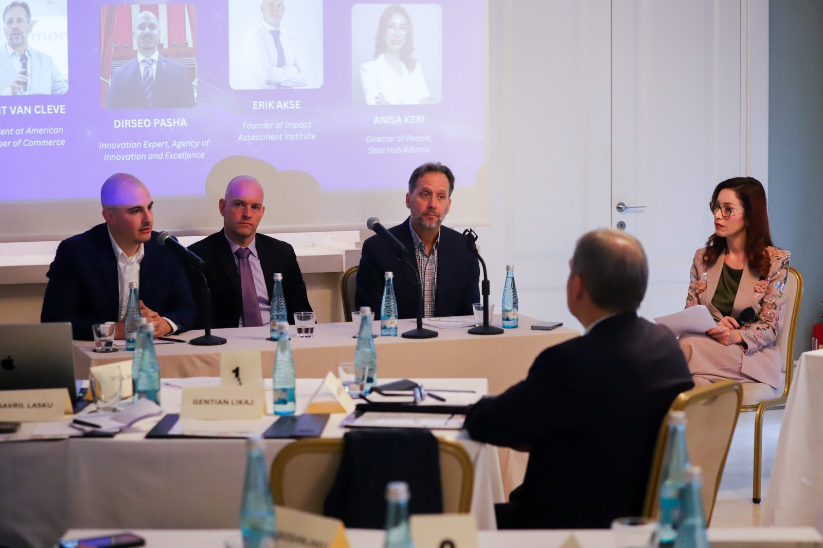 Paneli i parë i eventit, i moderuar nga Anisa Keri (Sisal Hub Albania), përfshiu emra të rëndësishëm si Dirseo Pasha (Agjencia e Inovacionit dhe Ekselencës), Grant Van Cleve (President, AmCham) dhe Erik Akse (Impact Assessment Institute).