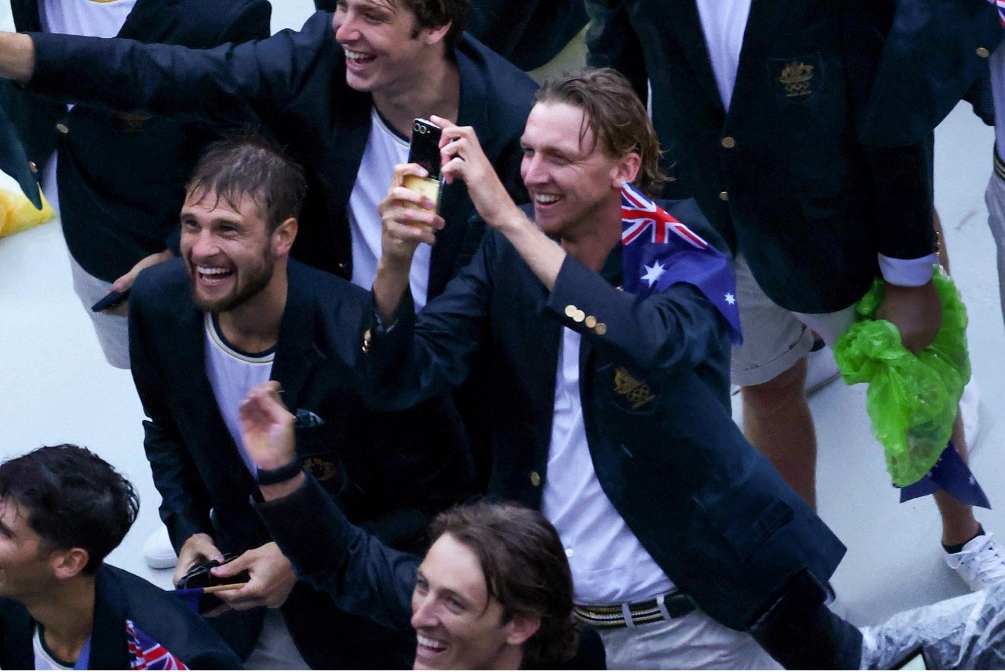 Ekipi i atletëve Australian ndan një selfie me fansat me versionin e ri Olimpik Samsung Galaxy Z Flip6. Foto: Getty / Samsung