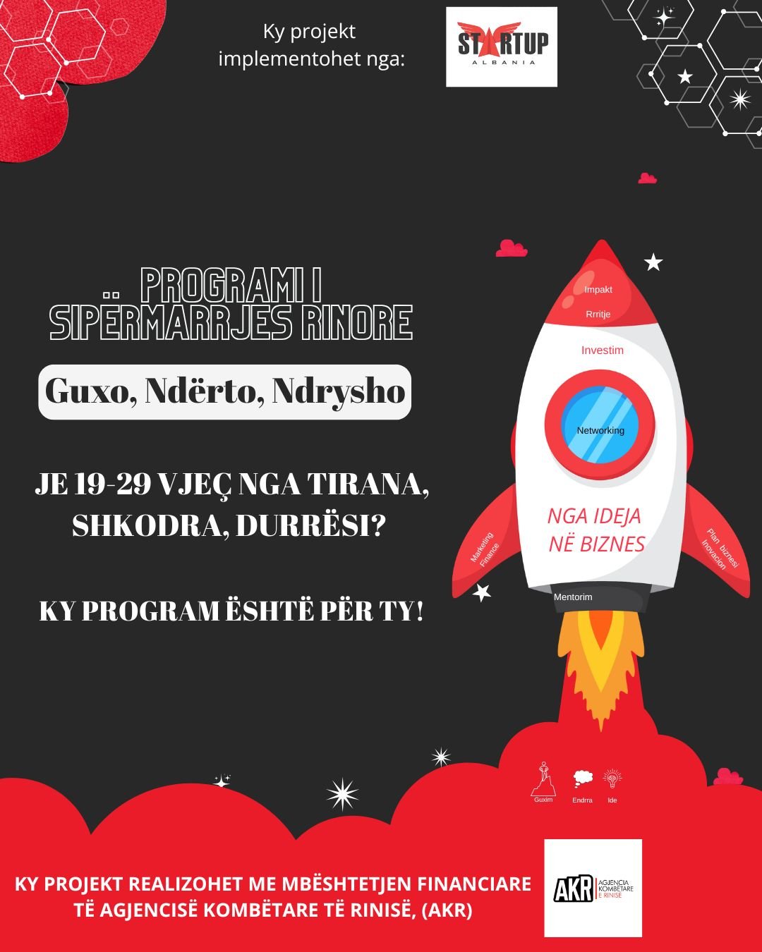 Programi i Sipërmarrjes Rinore “Guxo, Ndërto, Ndrysho” zbatohet nga Fondacioni “Startup Albania” me mbështetje financiare nga Agjencia Kombëtare e Rinisë (AKR).